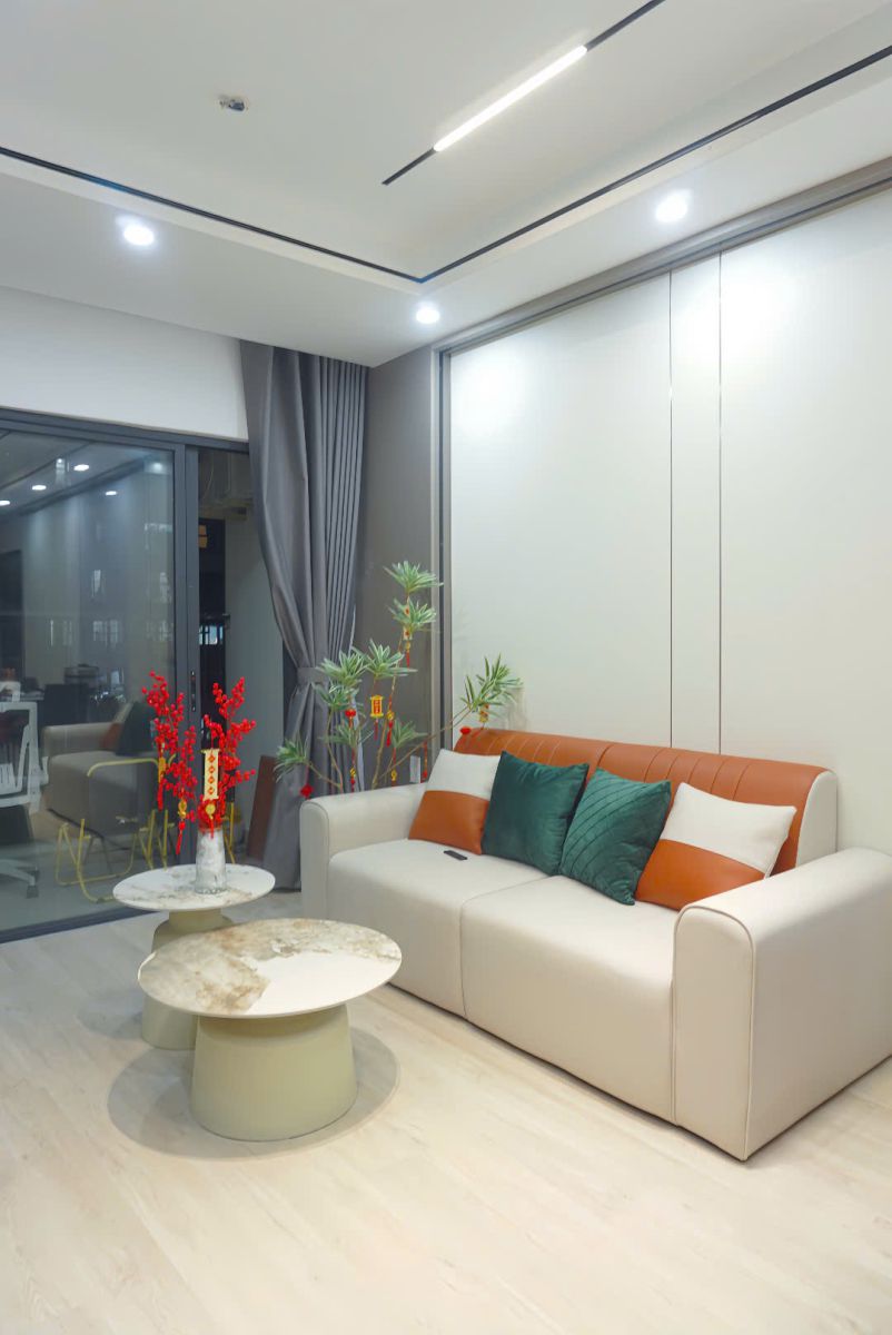 Căn hộ được định hướng theo các phong cách hiện đại, tối giản, sửu dụng gam màu trung tính kết hợp điểm nhấn nâu - cam tạo cảm giác ấm cúng nhưng vẫn sang trọng.