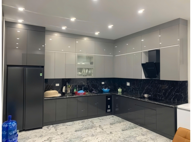 • Bề mặt cánh tủ Acrylic có độ bóng gương ấn tượng, tạo hiệu ứng phản chiếu, giúp không gian bếp trở nên rộng rãi và thoáng đãng hơn.