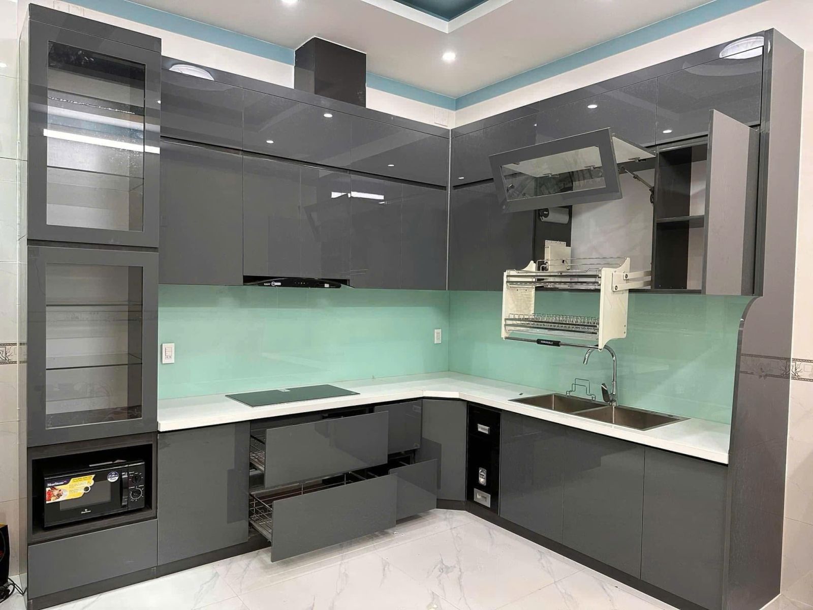 Cánh Acrylic Bóng Gương: Bề mặt cánh tủ được phủ lớp Acrylic bóng gương, mang lại vẻ đẹp sang trọng, hiện đại. Lớp phủ này giúp tạo hiệu ứng mở rộng không gian, căn bếp có cảm giác rộng rãi, dễ dàng lau chùi, vệ sinh, giữ cho tủ luôn sáng bóng như mới.